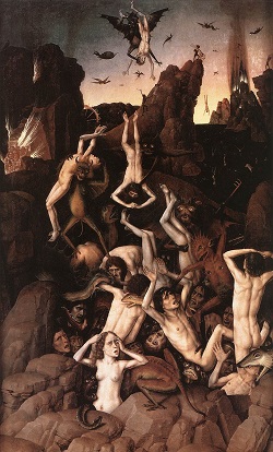 If you ask me, like music and systems of government, art of olden times just has a certain quaint barbarity that really can’t be beat. I love it all, the older the better, hell, I even love those old gold leaf icon paintings where Jesus looks like a tiny man sucking on the teet of his virgin mother while giving the sign of a shocker. However, my favorite of all old tyme art is that of the Renaissance, specifically the Dutch and Flemish* Renaissance. Not only did these artists show a real knack for capturing peasant life and landscape with their incredibly detailed paintings of the actual world they lived in instead of focusing too heavily on all that Christian bullshit. And, when they did decide to paint some Christian bullshit, they used the Book of Revelations as an excuse to paint some of the most metal of all paintings ever! (Click the images for larger pictures)